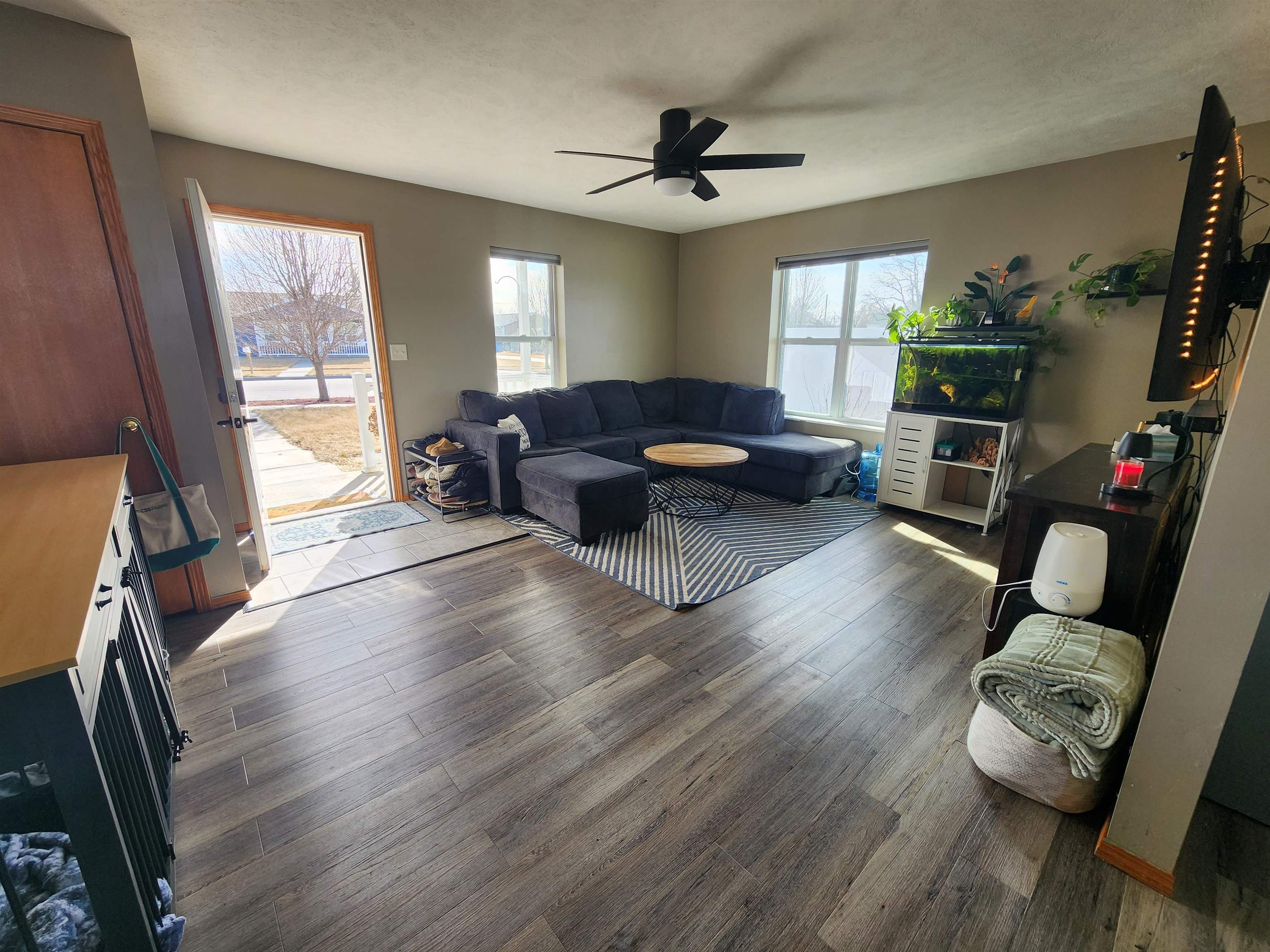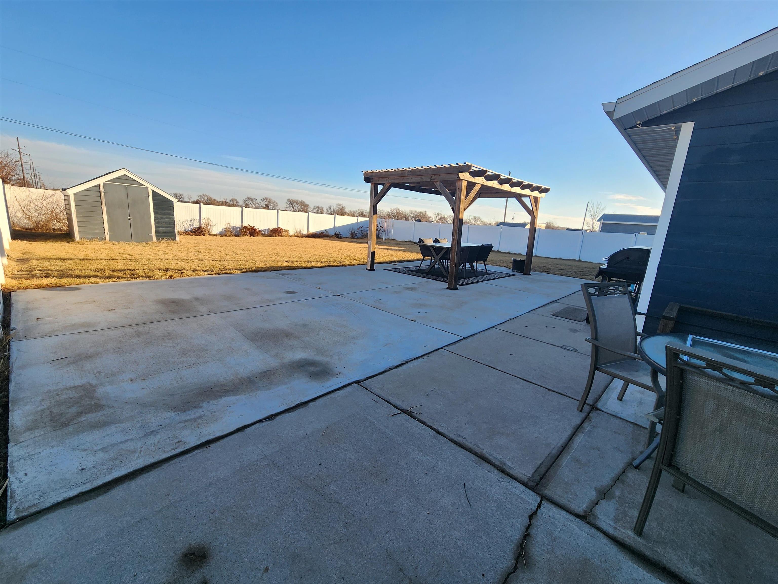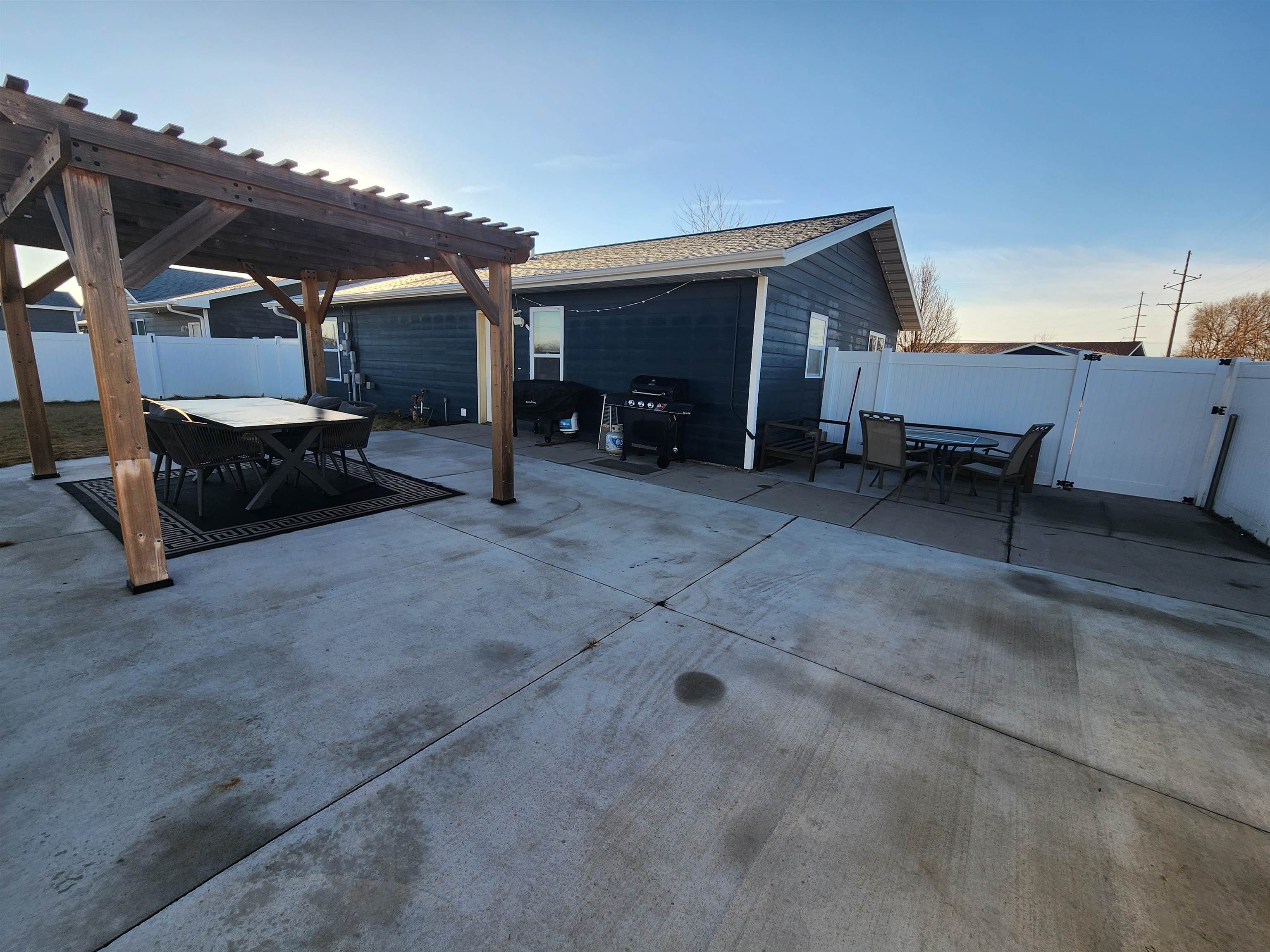 Welcome home to 1204 E 17th St! Built in 2015 and recently refreshed with a newly painted exterior, this 3-bedroom ranch offers the perfect blend of high-tech efficiency and premium outdoor living. The highlight of this property is the incredible backyard and entertainer’s dream. Step out onto the new concrete patio, featuring a wooden pergola perfect for summer evenings. The entire backyard is fully enclosed by a 6-foot white vinyl privacy fence, offering a secure and private retreat. For added convenience, a storage shed is ready to house your lawn mower and tools, keeping your yard clutter-free. The house is also equipped with a smart underground sprinkler system that can be turned on and off remotely or automatically based on weather. Inside, the home features stylish and durable new LVP flooring throughout most of the space, with a tiled entryway for easy maintenance. The kitchen is fully equipped with modern appliances, a deep basin sink, and a built-in Reverse Osmosis (RO) water filtration system. The bathroom has been thoughtfully updated with a newer vanity and toilet, and includes a full-sized linen closet for excellent storage. The home is all-electric (Heat Pump, Water Heater, Forced Air) and even includes an EV plug hookup in the driveway. With a newly painted exterior, steel front and back doors for security