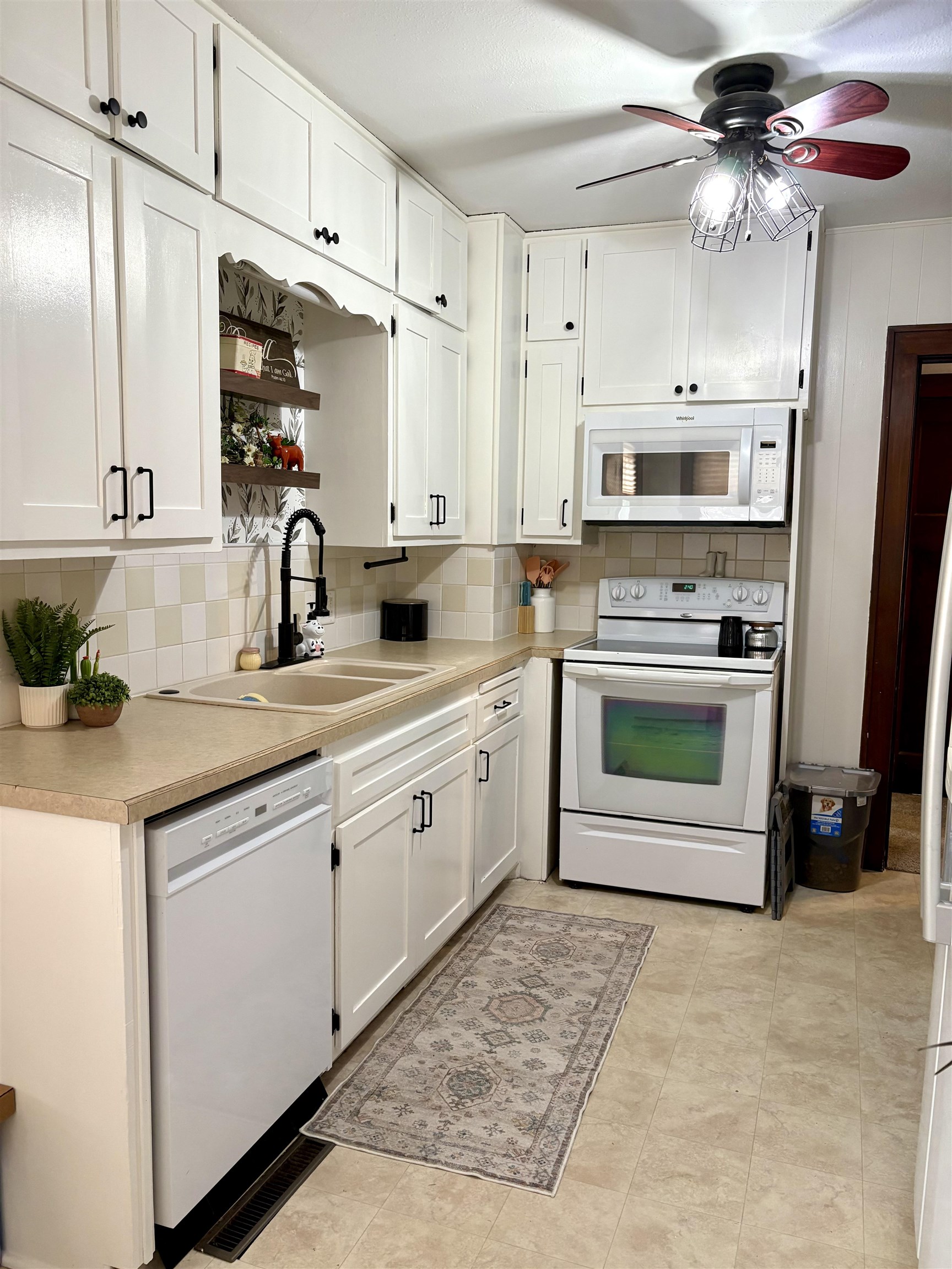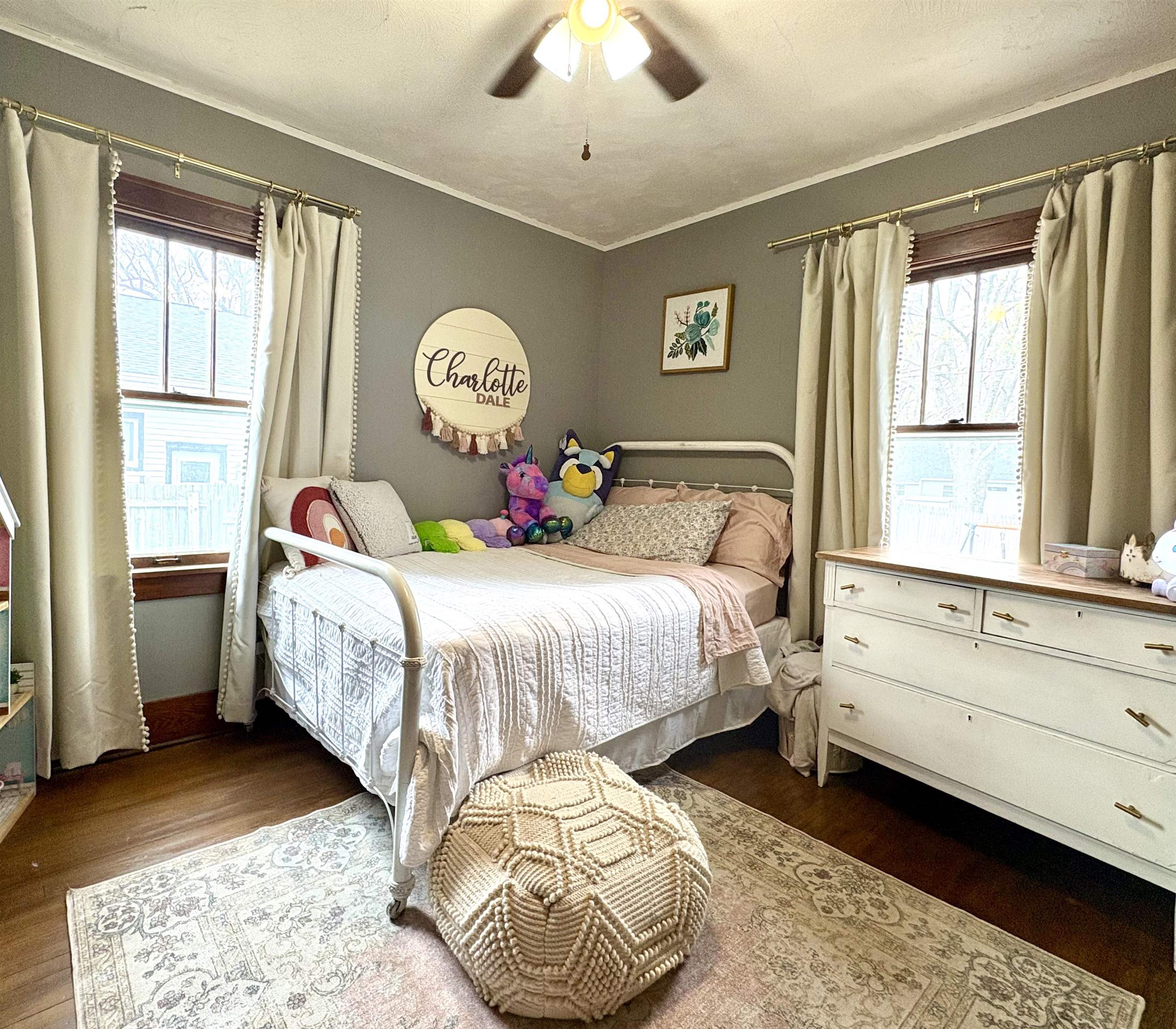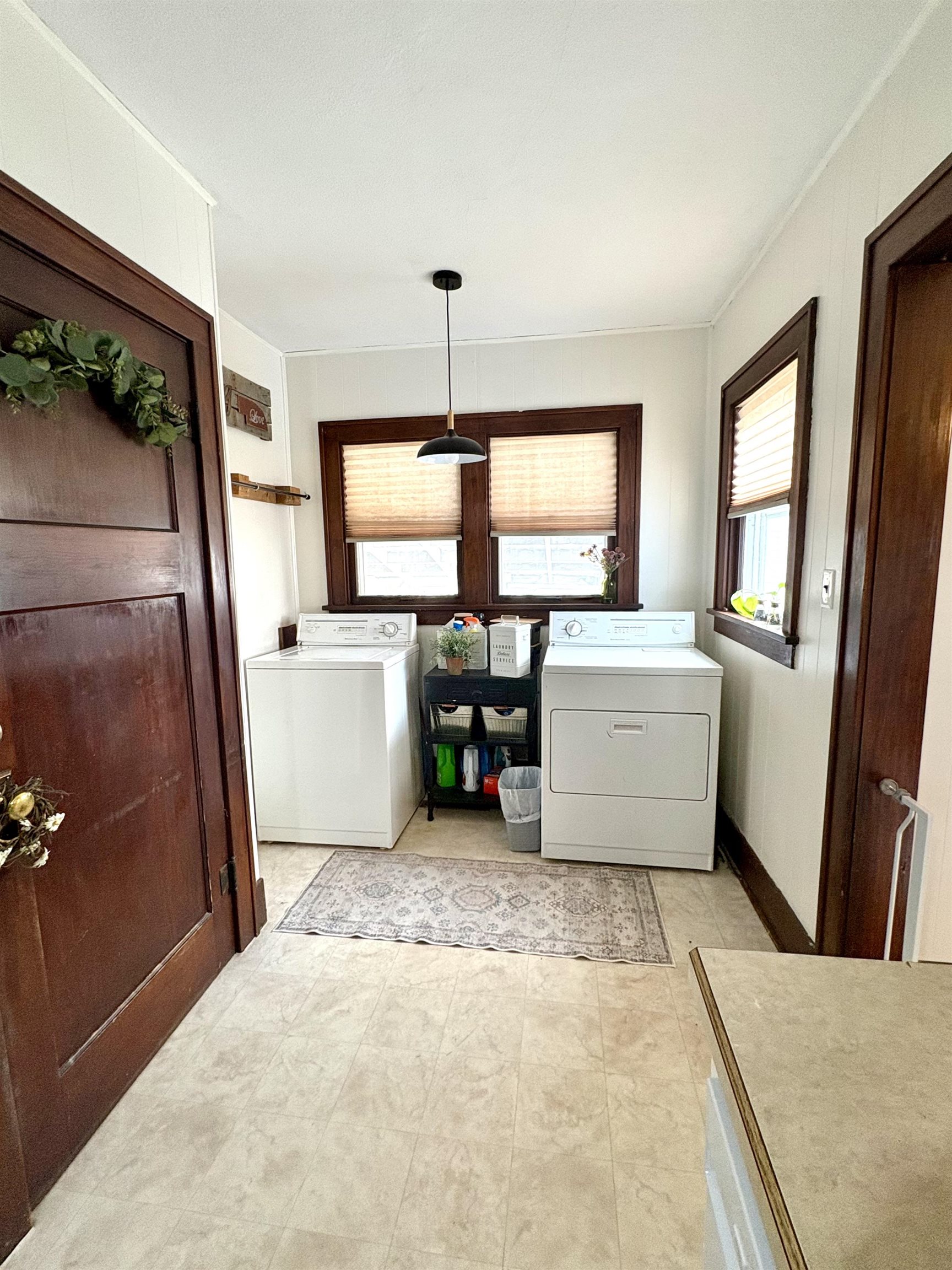 Original charm plus modern updates is what you’ll find in this 1 1/2 story, 4 bedroom, 2 bath home. Updated kitchen & bathrooms; separate dining room with original wood floors; spacious living room with patio doors to the covered deck; 2 bedrooms on the main floor with original wood floors; laundry at one end of the kitchen; mud room in back door entry; enclosed front porch. The partial basement is mostly finished with a family room and bathroom. There is an enclosed area between garage and house which is great for bikes, etc. Wood fenced back yard; carport; detached garage with opener. Roof is 5 years old. Located only blocks from the middle school & high school. Lot is 60′ x 132′. You’ll want to look at this charming home right away.